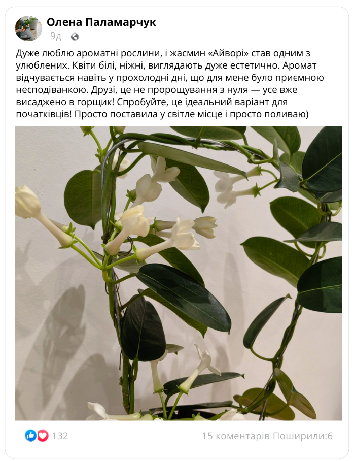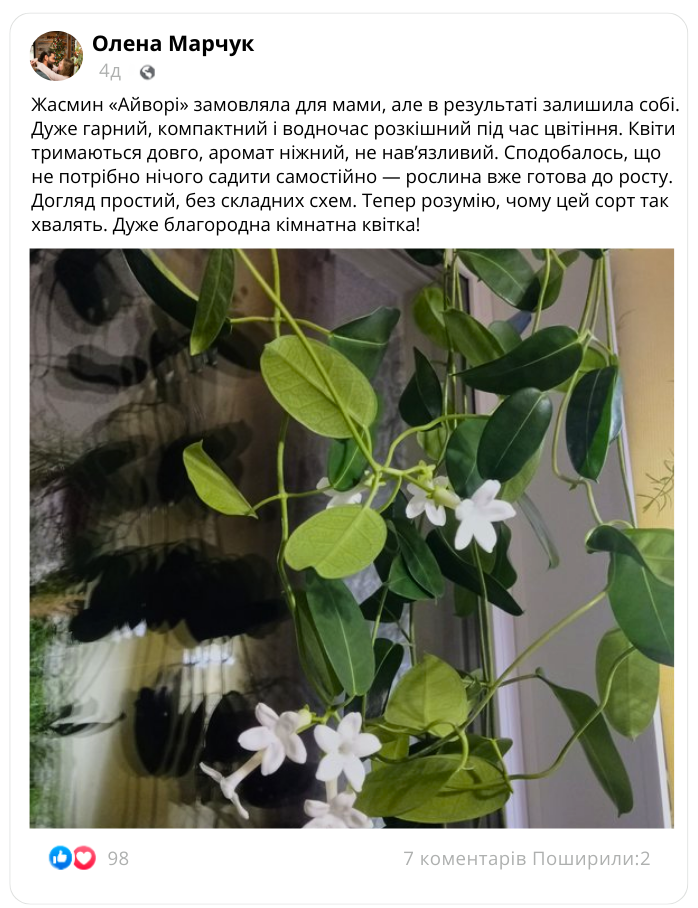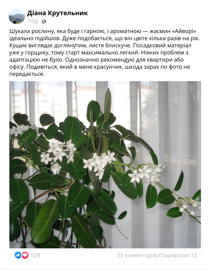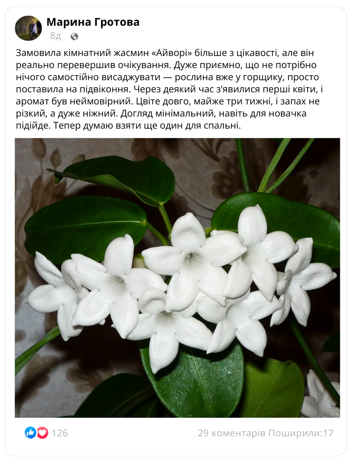 Що кажуть наші покупці про кімнатний жасмин «Айворі»?